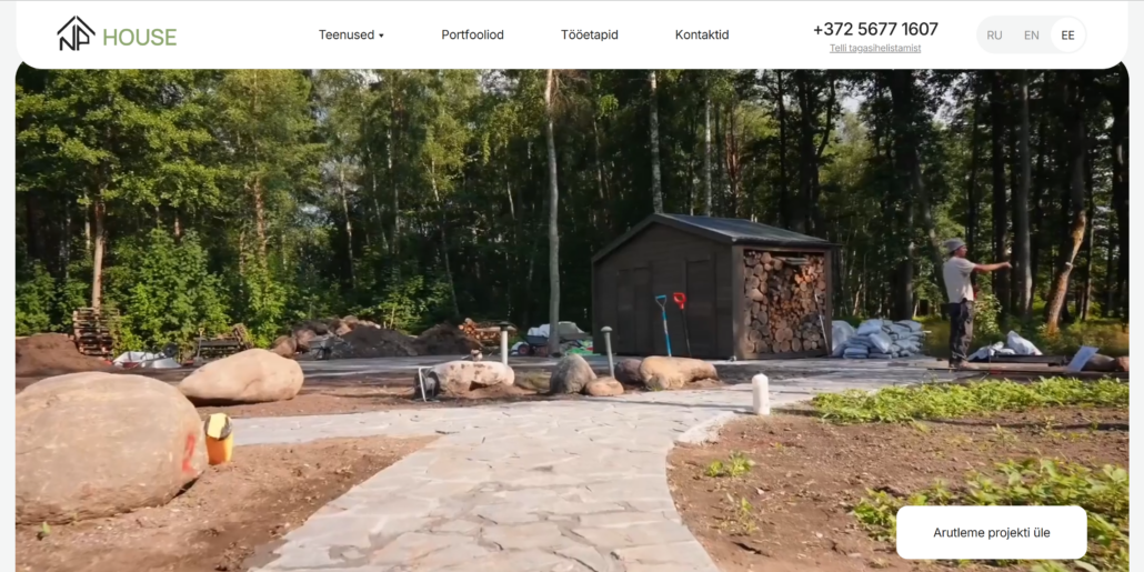 Рад представить нового партнёра по сотрудничеству — NP House, компанию, которая предлагает полный спектр услуг по благоустройству и озеленению участка “под ключ”. Специалисты NP House выполняют работы по ландшафтному дизайну, укладке плитки и брусчатки (tänavakivi), укладке рулонного газаона и посадке растений, установке деревянных заборов и монтажу автоматических систем полива.